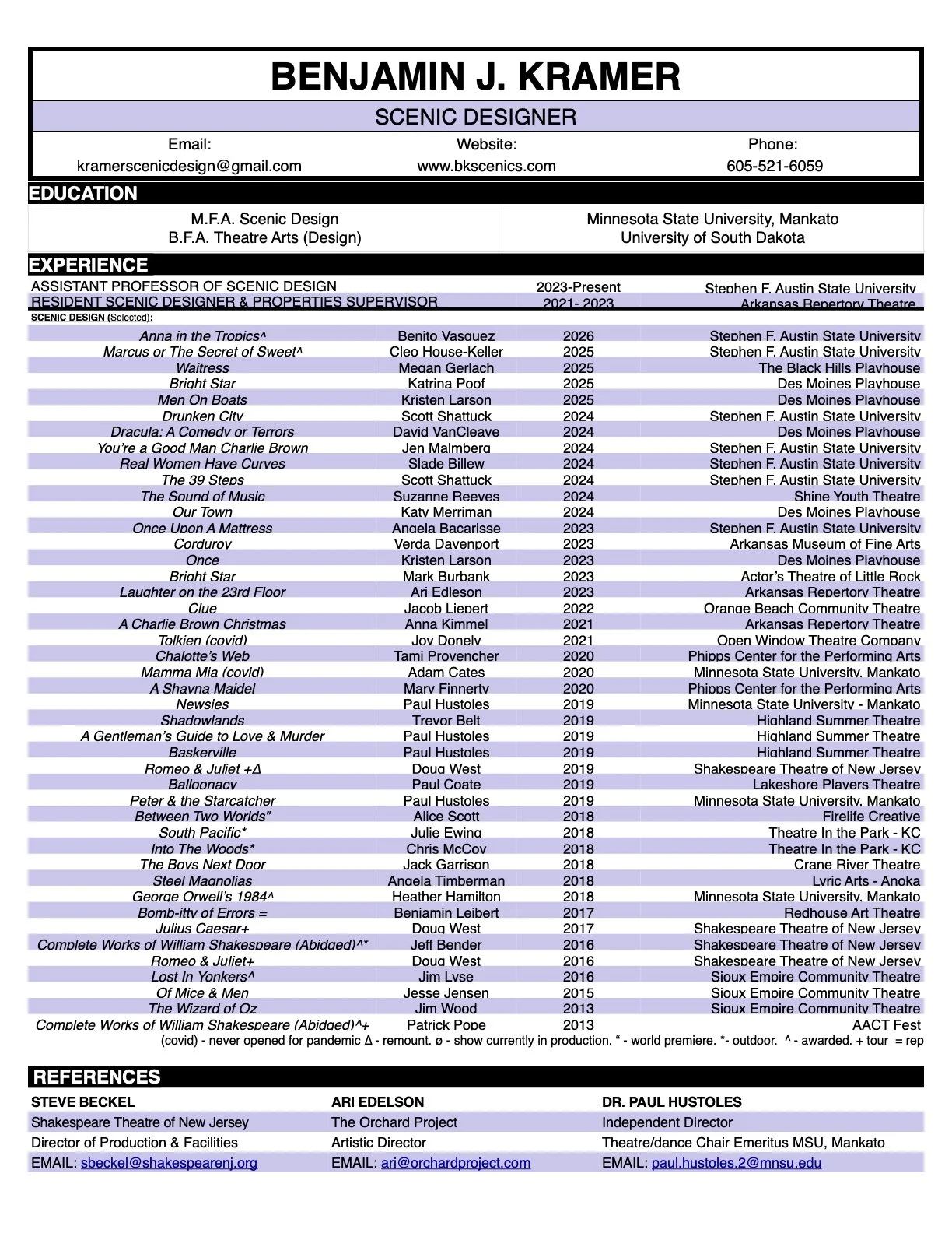 Process photographs and images of completed props and special design projects as well as renderings.